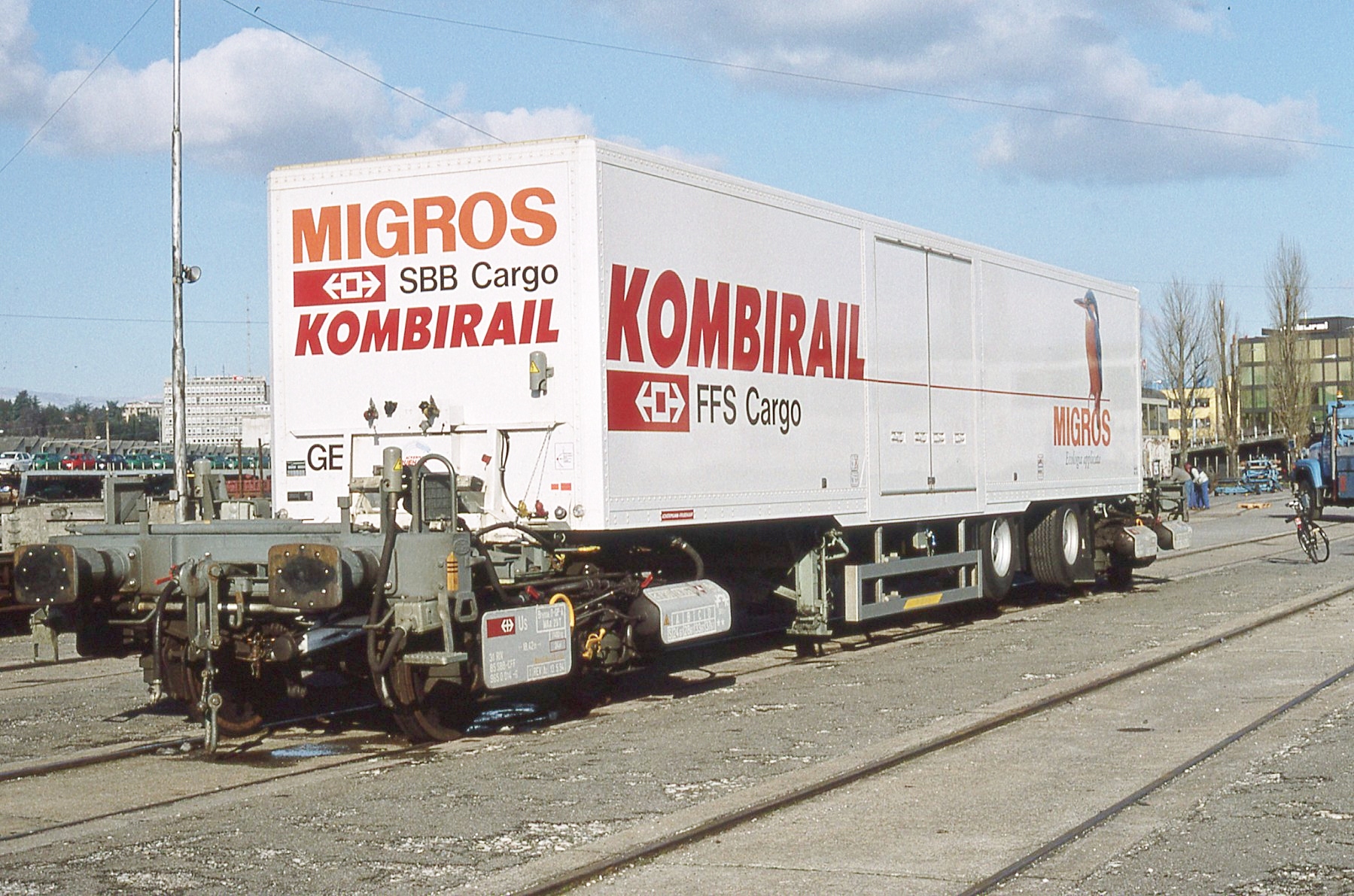 Swiss national railway SBB purchased 19 adapter bogies in 199316 and KombiTrailers were used to transport goods for supermarket chain Migros as late as 200017. Some photos show them in small groups of one or two trailers coupled into wagonload trains.